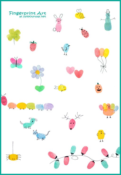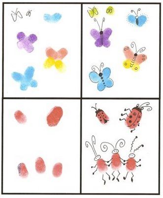 نقاشی با اثر انگشت و گواش و مداد رنگی